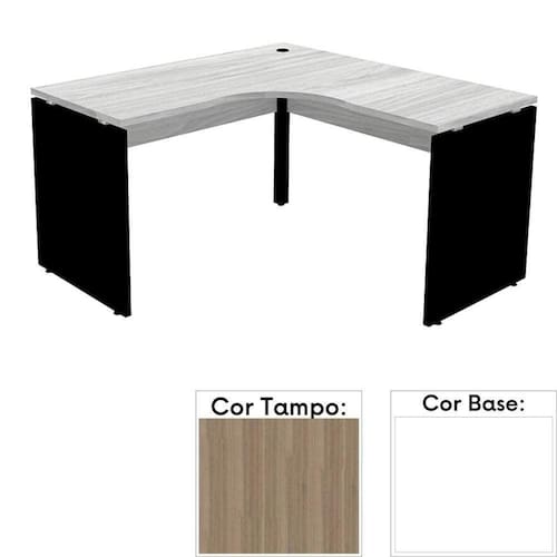 Mesa De Escritório Em L Pé Painel Pe25 Em Mdp 145 X 145 X 60 Cm Cor Noce Naturalle E Base Branca