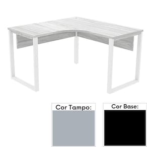 Mesa de Escritório em L Pé Tubular PE25 em MDP 145 x 145 x 60 cm Cinza com Base Preta
