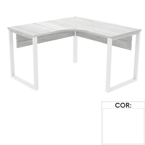 Mesa de Escritório em L Pé Tubular PE25 em MDP 155 x 155 x 60 cm Branca com Base Branca - Branco