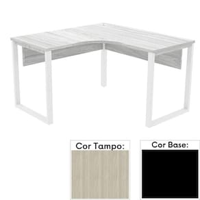 Mesa de Escritório em L Pé Tubular PE25 em MDP 155 x 155 x 60 cm Nogueira CasaBlanca e Base Preta - Bege Claro
