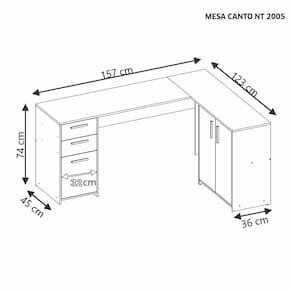 Versátil e espaçosa a Mesa Office NT 2005 da Notável Móveis, oferece para você um local de trabalho ou estudo que permite organizar melhor seus objetos de uso diário. Ela se adequa a sua necessidade, pois o gaveteiro pode ser montado no lado direito ou esquerdo, como você quiser! Conta com puxadores em alumínio e 3 portas dando um charme todo especial ao produto.