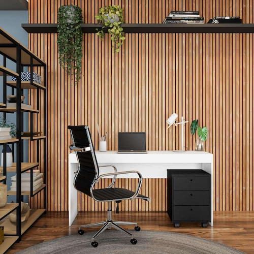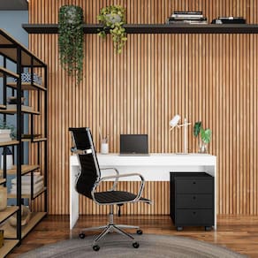 que tal a mesa de escritório gabri?o lugar onde você concentra suas atividades do dia a dia precisa ter um bom apoio para os seus eletrônicos e itens pessoais, né? a mesa gabri é especial pois disponibiliza um ótimo cantinho onde deixar o notebook, garrafa de água, caderno e outros acessórios que você precisa ter por perto, sem contar que as pernas têm bastante espaço para se movimentar debaixo do tampo - mas, você pode t também um gaveteiro para complementar a usabilidade! simples de inserir no cômodo, ela é sóbria e tem design clean para que você não tenha dificuldade na hora de compor a hor décor.