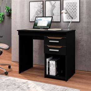 AS IMAGENS SÃO MERAMENTE ILUSTRATIVAS E PODEM SOFRER VARIAÇÕES DE COR E PEQUENOS DETALHES DE ACORDO COM O SEU MONITOR, ILUMINAÇÃO DO AMBIENTE E ATÉ MESMO A SUA PERCEPÇÃO de EscritÃrio Home Office Veneza 90cm com 2 Gavetas - Preto
