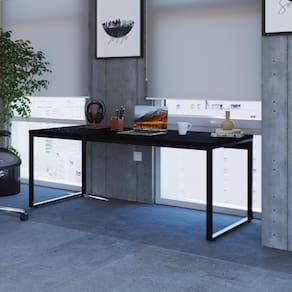 A Mesa de escritório se destaca por seu estilo industrial que se inspira nas instalações de fábricas das grandes cidades. Conta com tampo em MDP, perfeita para deixar seu escritório com designer moderno e dando ainda mais personalidade ao seu espaço. Os pés são em aço. Para um ambiente moderno é necessário escolher móveis arrojados, únicos, que irão impressionar logo à primeira vista.