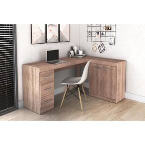Mesa de Escritório MSM446 c/ 2 Portas e 3 Gavetas Rustico - Movelbento