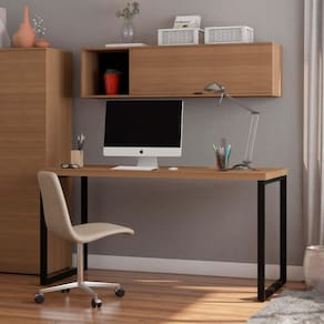 Que tal a Mesa de Escritório Munique?Você não precisa encher o seu cômodo de coisas para conquistar um cantinho de estudos ou home office completo. Pelo contrário, basta apostar nos móveis certos para que o seu desempenho ganhe uma grande aliada: a organização! Com a Mesa Munique os seus objetos pertinentes à rotina ficam dispostos no tampo, além de itens decorativos que ajudam a deixar o cômodo mais receptivo. Já o visual de cores tradicionais e design industrial ajuda a ambientar o espaço de maneira profissional e agradável para o dia a dia. Agora é só encontrar uma cadeira para dar aquele match perfeito com a sua mesa!