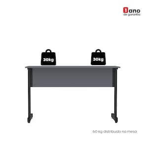 MDP BP 15mm e estrutura em aço tubularMesa de Escritório Reta 120cm com Pé Tubular em Aço Grafito/Preto -