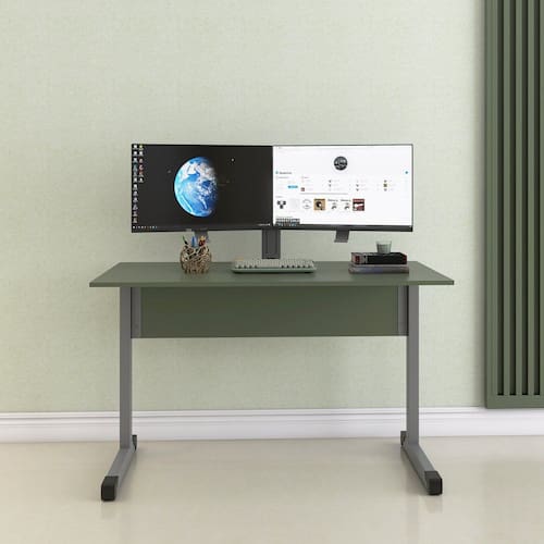 MDP BP 15mm e estrutura em aço tubularMesa de Escritório Reta 120cm com Pé Tubular em Aço Sálvia/Grafito -