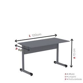 MDP BP 15mm e aço tubularMesa de Escritório Reta 120cm com Pé Tubular em Aço Grafito -