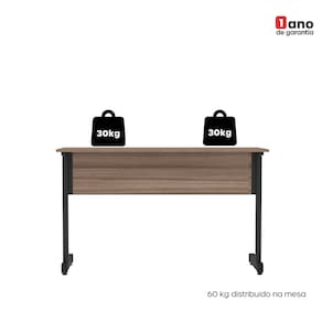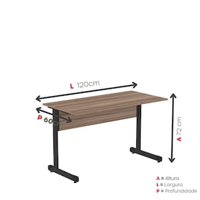 MDP BP 15mm e estrutura em aço tubularMesa de Escritório Reta 120cm com Pé Tubular em Aço Walnut/Preto -