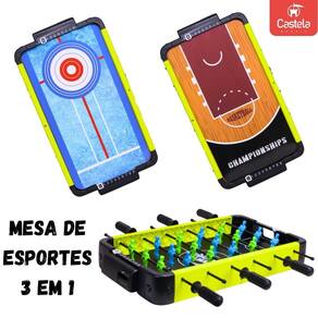 Mesa de esportes portátil pebolim 3 em 1 infantil - castela Descrição do produto: