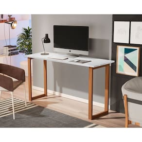 Mesa de Estudo Office 1.20cm - Pés em Madeira Maciça c/ Pintura Anti Umidade - Tampo 15mm c/ fita de borda - Branco