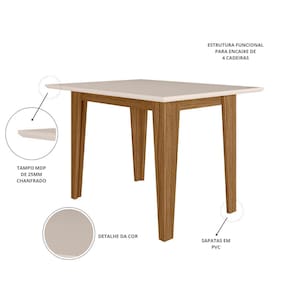 Características: Acabamento pintura UV Base com 4 pés Bordas chanfradas que valorizam o produto Estrutura em MDP Ideal para 4 lugares Peso máximo suportado 45kg Sapatas plásticas que garantem melhor durabilidade e estabilidade Tampo em MDP 25mm, retangular de 120cm