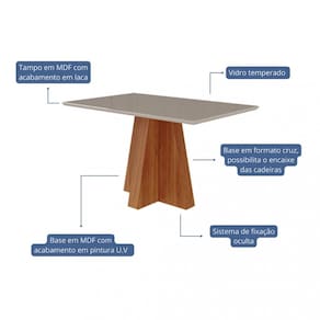 A Mesa Maitê da Cimol, com dimensões de 1,30x0,80m, é ideal para reunir a família em momentos agradáveis e descontraídos. Com base em formato cruz, tampo em MDF/vidro com bordas laqueadas e acabamento em laca, ela combina design inovador e estilo moderno para qualquer ambiente.