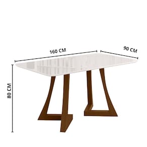 Mesa de Jantar 160cm com Tampo de Vidro Ana Sonetto, sendo produzido em MDP e MDF com tampo de MDF 25mm e vidro de 4mm, oferecendo durabilidade e um design moderno. Seu acabamento em pintura PU garante um visual sofisticado e maior protecao, tornando-o ideal para valorizar diversos ambientes com estilo e funcionalidade.