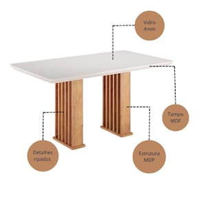 Mesa de Jantar 160cm com Tampo de Vidro Munique Viero A Mesa Munique 160cm e ideal para 6 lugares e une estilo e funcionalidade. A base vazada em MDP com detalhes ripados garante estabilidade e um visual moderno. O tampo em MDF com vidro colado de 4 mm oferece resistencia e acabamento refinado, enquanto a pintura UV semibrilho facilita a limpeza. Com cantos arredondados para mais seguranca e capacidade de ate 50 kg, e perfeita para refeicoes em familia e encontros com amigos um destaque na decoracao.