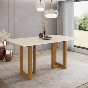 A Mesa Yara é a combinação perfeita entre estilo e funcionalidade! Com um design moderno e sofisticado, esta mesa possui tampo de MDF e canto Reto na cor Marrom/Off White, conferindo um toque sofisticado a qualquer ambiente. Medidas (AxLxP): 80x160x90cm, Tampo de 2,5 cm, Vidro 4mm. A base tem detalhes que garantem um visual único, você vai se apaixonar! Acabamento: Laca Acabamento da Base: Pintura UV Acabamento do Tampo: Laca Ambiente Principal: Sala de Jantar Atóxico: Sim codigo_ean: 7909903325100 Complexidade da Montagem: Média: pode ser montado por mais de uma pessoa e/ou necessite de maior conhecimento para montagem Cor: Marrom/Off White Cor do Produto: Marrom/Off White Dobrável: Não Escala de Brilho: Fosco Espessura do Tampo: 25 mm Extensível: Não Itens Inclusos: 1 Mesa, Kit Ferragens e Manual de Montagem Linha ou Coleção: Yara Manual de Montagem e Instalação: https://product-hub-prd.madeiramadeira.com.br/854041/documents/d60edef5-a17b-45d6-bfa7-33f7ae7ff7bc03sc80mesayara1600mmsvidro.pdf Material da Base: MDP Material do Tampo: MDF Material Principal: MDF/MDP Medida da Base (A x L x P): 77,5x114,5x50cm Medida da Mesa (A x L x P): 80x160x90 Medida do Tampo (L x C x E): 160x90x2,5cm Necessita Montagem: Sim Origem do Produto: Nacional Peso: 42 kg Possui Portas: Não Possui prateleira: Não Possui Rodízio: Não Possui Vidro: Não Recomendações de Uso, Manutenção e Limpeza: Para limpeza de seu móvel, use uma flanela seca ou umedecida. Não utilize produtos químicos que possam danificar o produto. Sistema de Montagem: Parafusos e Cavilhas. Suporta Até (kg): 40 kg