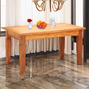 Mesa de jantar em madeira maciça de 1,70m, ideal para reunir família e amigos com estilo e durabilidade. Estrutura robusta, acabamento natural envernizado e design atemporal que valoriza qualquer ambiente, da sala à área gourmet.