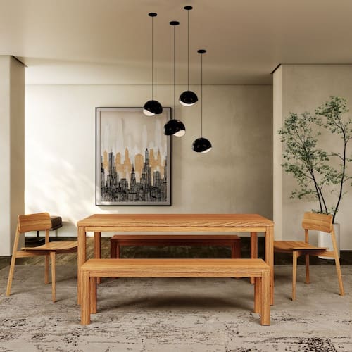 Características: Estrutura em Madeira Maciça de Pinus Taeda de Reflorestamento Pintura semi-brilho Acabamento escovado Pés retos em madeira maciça Peso máximo suportado pela Mesa: 80kg distribuídos Peso máximo suportado pela Cadeira: 120kg distribuídos Peso máximo suportado pelo Banco: 200kg distribuídos