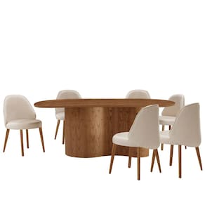 Inspirada pela grandiosidade dos Alpes, a Sala de Jantar Ester combina a imponência da natureza com a sofisticação do design. A mesa, com base orgânica esculpida, remete às montanhas, enquanto o tampo em madeira nobre traz beleza e robustez. As cadeiras, com curvas suaves e tecidos sofisticados, oferecem conforto excepcional, abraçando o corpo com elegância. Cada detalhe é pensado para criar uma atmosfera acolhedora e luxuosa, proporcionando uma experiência sensorial que transporta você para o coração dos Alpes, onde a serenidade e a beleza se encontram. Medida da Mesa (A x L x P): 80 x 180 x 90 Peso da Mesa: 82,2 kg Mesa suporta até: 40 kg Acabamento da Cadeira/Banco: Verniz Natural Acabamento da Mesa: Verniz Acompanha Manual de Instalação: Sim Almofada do assento: Fixa Almofada do encosto: Fixa Ambiente Principal: Sala de Jantar Cadeira/Banco Estofada: Encosto e Assento Estofados Cadeira/Banco estofada: Encosto e Assento Estofados Cadeira/Banco suporta até: 150 kg codigo_ean: 7900288189837 Complexidade da Montagem: Média: pode ser montado por mais de uma pessoa e/ou necessite de maior conhecimento para montagem Configuração do Conjunto: Mesa com Cadeiras Cor: Off White / Imbuia Natural Cor do Produto: Off White / Imbuia Natural Cor Flex: Não Cor Secundária: Bege De Canto (Canto Alemão): Não Design da Base: Em U Enchimento do Assento: Espuma D-26 Escala de Brilho: Semi-Fosco Espessura do Tampo: 40 mm Estrutura do Assento: Madeira Formato do Tampo: Oval Informações Complementares: As cadeiras são entregues totalmente montadas, prontas para uso. Itens Inclusos: 1 Mesa de Jantar, 6 Cadeiras, Kit Ferragem e Manual de Montagem Linha ou Coleção: Ester Manual de Montagem e Instalação: https://product-hub-prd.madeiramadeira.com.br/493770836/documents/15f96dc6-f1cf-4dd4-95ff-b9588ee8236b3053574584417518853106408.pdf Marca: Mobilare Material da Base da Mesa: MDF Laminado/Madeira Maciça Material da Estrutura da Cadeira: Madeira Material do Tampo: Laminado Material Principal: Madeira Material Principal das Cadeiras/Bancos: Madeira Maciça Medida da Cadeira/Banco (A x L x P): 90 x 54 x 51 Medida do Tampo (L x C x E): 180 x 90 x 4 Mesa Dobrável: Não Mesa Extensível: Não Montagem Flex: Não Necessita Montagem: Sim Origem do Produto: Nacional Peso da Cadeira/Banco: 7,1 kg Possui Apoio para Braços: Não Possui Apoio Para os Pés: Não Possui Prateleiras: Não Possui Suporte Giratório: Não Possui Vidro: Não Quantidade de Cadeiras: 6 Quantidade de Lugares: 06 Recomendações de Uso, Manutenção e Limpeza: Limpar com pano seco. Revestimento da Cadeira/Banco: Linho Sistema de Montagem: Parafusos Tipo de Assento: Fixo Tipo de Encosto: Estofado