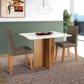 O(a) Mesa de Jantar 2 Lugares Florida 10083.6 Tecido Cacau - Indekes  é produzido em MDP na escala de brilho Fosco, e possui um grau de dificuldade de montagem: Médio.