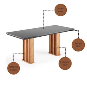 Mesa de Jantar 200cm com Tampo de Vidro Munique Viero A Mesa Munique 200cm e ideal para 8 lugares e compoe ambientes amplos com elegancia. A estrutura em MDP tem base vazada com detalhes ripados, garantindo estabilidade e visual moderno. O tampo em MDF com vidro colado de 4 mm oferece resistencia e acabamento refinado, enquanto a pintura UV semibrilho facilita a limpeza e realca o design. Os cantos arredondados aumentam a seguranca no uso diario. Com capacidade para ate 50 kg, une robustez e funcionalidade para refeicoes em familia e encontros com amigos um verdadeiro destaque na decoracao.