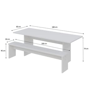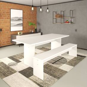 O Conjunto de Mesa de Jantar Essence com 1 Banco ESMJ82002.CJ1B combina elegância e praticidade para ambientes contemporâneos. A mesa de jantar e o banco são fabricados em MDP BP de 2,5cm, com bordas em PVC de 1cm, garantindo durabilidade e um excelente acabamento. Com um design minimalista e pés robustos, o conjunto oferece estabilidade e se adapta a diferentes estilos de decoração. Ideal para salas de jantar ou áreas de convivência, o Conjunto Essence é a escolha perfeita para quem busca qualidade e funcionalidade. Acabamento: BP Acabamento da Base: Melamínico Acabamento do Tampo: BP Ambiente Principal: Sala de Jantar Complexidade da Montagem: Alta: deve ser montado por um montador especializado Cor: Branco Cor do Produto: Branco Design da Base: Pedestal Duplo Dobrável: Não Escala de Brilho: Fosco Espessura do Tampo: 25 mm Extensível: Não Itens Inclusos: 1 Mesa de Jantar + 1 Bancos Manual de Montagem e Instalação: https://cdn2.madeiramadeira.com.br/prd/compace-dalex/2674839-1738956916-977418-148979.pdf Marca: Metalig Material da Base: MDP Material do Tampo: MDP Medida da Base (A x L x P): 71,5 x 200 x 80 Medida da Mesa (A x L x P): 74 x 200 x 80 Medida do Tampo (L x C x E): 200cm x 80cm x 2,5cm Necessita Montagem: Sim Origem do Produto: Nacional Peso: 55,75 kg Possui Portas: Não Possui prateleira: Não Possui Rodízio: Não Possui Suporte Giratório: Não Possui Vidro: Não Recomendações de Uso, Manutenção e Limpeza: Para a limpeza, utilize flanela seca ou pano macio levemente umedecido em água. Utilize um pano seco em seguida. Evite contato com produtos químicos (solventes, thinner, acetona, etc) e não utilize nenhum tipo de esponja de aço. Resistência à Chuva: Não Resistência ao Sol: Não Sistema de Montagem: Parafuso, Sapata Niveladora, Bucha C/Rosca e Chave Hexagonal Suporta Até (kg): 390 kg Marca: Metalig