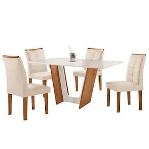 Com a mesa de jantar Florença/Villa Rica você tem beleza e conforto em um único produto, são 4 cadeiras e uma mesa em MDF com tampo de vidro que deixará a sua sala de jantar ainda mais elegante e funcional. Cadeiras com tecido de veludo, assento D-23 e encosto D-20 produzidos com a melhor qualidade.