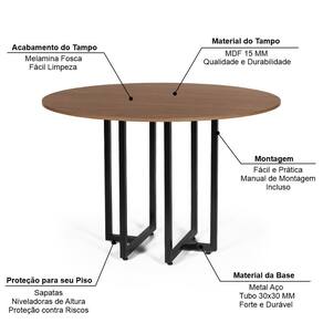 Capacidade Ideal para 6 Pessoas: Com 120 cm de diâmetro, esta mesa redonda oferece um excelente espaço para refeições e encontros, acomodando até 6 pessoas confortavelmente. O formato circular facilita a conversa e suaviza o layout do seu ambiente.