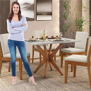 A mesa de jantar 4 lugares Donna é o que faltava para deixar a sua sala de jantar completa.