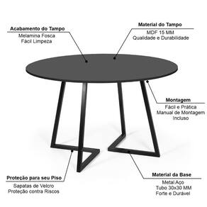Mesa de Jantar 4 Lugares 90cm Redonda Industrial Rigo - Straub Web Preta -