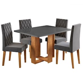 Mesa de Jantar 4 Lugares Afrodite Marrom/Cinza/Veludo Cinza - Viero Móveis