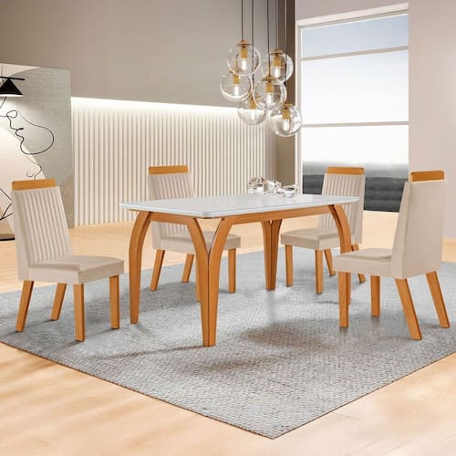 - Acompanha: Mesa de Jantar + 4 Cadeiras + Kit Ferragens + Manual de Montagem