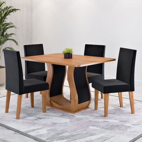 - Acompanha: Mesa de Jantar + 4 Cadeiras + Kit Ferragens + Manual de Montagem