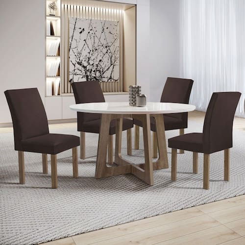 - Acompanha: Mesa de jantar + 4 Cadeiras + Kit Ferragens + Manual de Montagem
