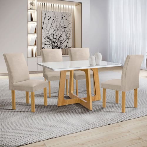 - Acompanha: Mesa de Jantar + 4 Cadeiras + Kit Ferragens + Manual de Montagem