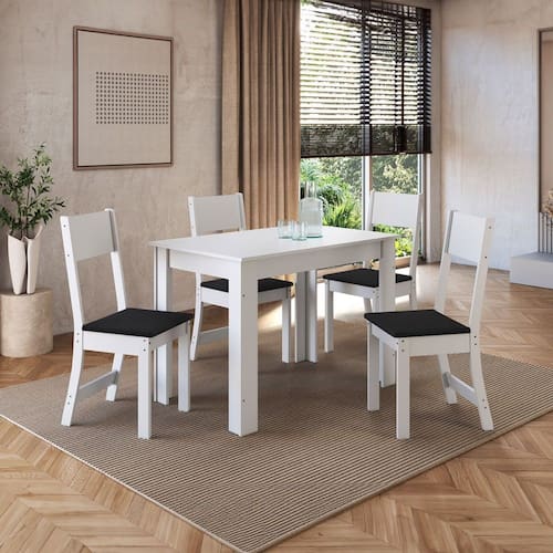 - Acompanha: Mesa de Jantar, 4 Cadeiras, Kit Ferragens e Manual de Montagem