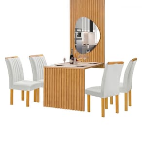 Mesa de Jantar 4 Lugares Bella Arizona com Vidro e Espelho Ripado Cinamomo/Off White/Boucle Gelo - Cel Móveis - Branco