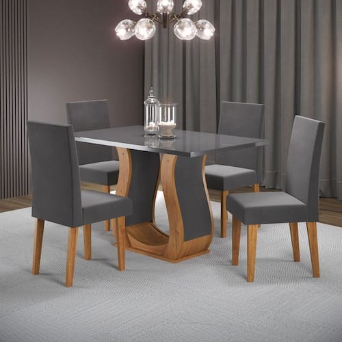 O(a) Mesa de Jantar 4 Lugares Benet Marrom/Grafite/Veludo Grafite é produzido em MDF e MDP na escala de brilho Semi-Brilho, e possui um grau de dificuldade de montagem: Médio.