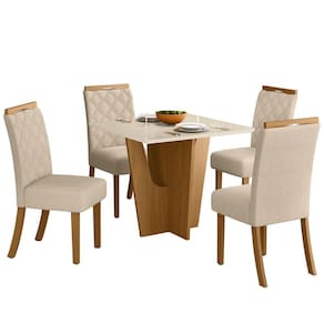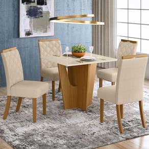 O(a) Mesa de Jantar 4 Lugares Chloe Nature/Off White/Linho - Loja é produzido em MDF na escala de brilho Brilho e Fosco, e possui um grau de dificuldade de montagem: Médio.