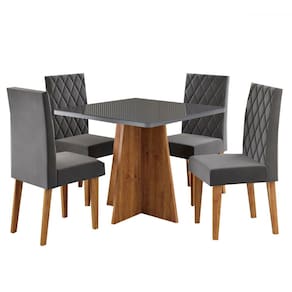 Mesa de Jantar 4 Lugares Evah Marrom/Cinza/Veludo Cinza - Viero Móveis