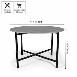 Design Redondo e Aconchegante: Com um tampo lindo em MDF de alta qualidade, acabamento resistente e bordas protegidas, essa mesa é fácil de limpar e ainda deixa o ambiente mais leve e convidativo. O formato redondo ajuda na circulação, sabe?