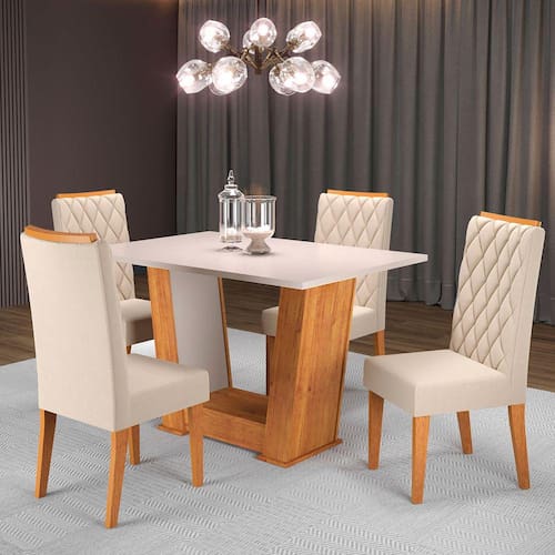 O(a) Mesa de Jantar 4 Lugares Squash Marrom/Blonde/Nude - Viero Móveis é produzido em MDF e MDP na escala de brilho Semi-Brilho, e possui um grau de dificuldade de montagem: Médio.