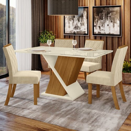 O(a) Mesa de Jantar 4 Lugares Viana Natural/Off White/Linho - Pnr Móveis é produzido em MDF e MDP na escala de brilho Brilho e Fosco, e possui um grau de dificuldade de montagem: Médio.