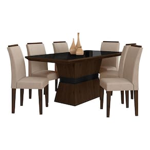 Detalhes Técnicos das Cadeiras - Assento e Encosto Tapeçados, Estofados e Fixos - Cadeira suporta até 90kg - Facilidade Montagem: Média - Tonalidade Cadeira: Imbuia/Suede Bege - Assento: D16 - Encosto: D14 - Pintura UV Texturizada - Material Estrutura: MDF 18mm e 25mm - Medida de cada Cadeira: A:100cm | L:44cm | P:50cm