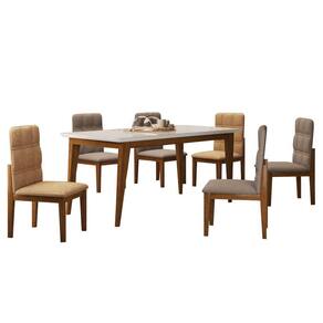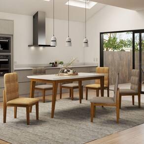 O(a) Mesa de Jantar 6 Lugares Luxe com Vidro Cinamomo/Off White - Loja é produzido em MDF e Madeira Maciça na escala de brilho Fosco, e possui um grau de dificuldade de montagem: Médio.