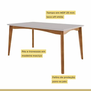 Elegância e resistência para sua sala de jantar! Produzida 100% em madeira maciça de eucalipto, com tampo em MDF laqueado Off White e vidro temperado serigrafado colado. Estrutura robusta com acabamento fosco e design moderno com 4 pés.