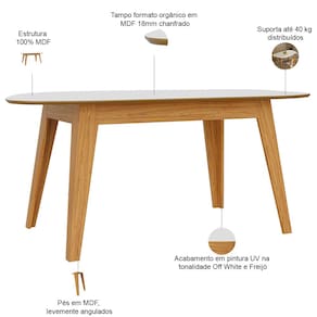 Seu design orgânico, com linhas suaves e curvas elegantes, cria uma atmosfera acolhedora enquanto acomoda até 6 pessoas com conforto e estilo. A combinação das tonalidades resulta em um visual contemporâneo e sofisticado, perfeito para quem busca equilibrar modernidade e calor humano. Além disso, é fabricada em MDF 18mm de alta resistência, o que faz torna essa mesa de jantar orgânica durável com um design que impressiona - seja em jantares formais ou cafés da manhã descontraídos.