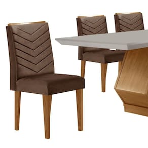A Sala de Jantar Alvorada com Cadeiras Liz e a personificacao da sofisticacao e da funcionalidade. Com um design exclusivo, a mesa destaca-se por sua base com linhas curvas e estrutura inteiramente em 100MDF, proporcionando nao apenas resistencia, mas tambem um equilibrio estetico que harmoniza o ambiente. As Cadeiras Liz complementam perfeitamente essa elegancia, com assentos e encostos estofados que garantem conforto, alem de detalhes bordados no encosto, conferindo um charme adicional e tornando cada refeicao uma experiencia unica.
