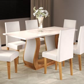 Mesa de Jantar Buenos Aires 160x80 cm, elegante e sofisticada. Seu tampo em MDP de 2,5cm oferece resistência e durabilidade, enquanto a base estofada em veludo agrega charme e requinte ao ambiente. Ideal para reunir a família e amigos, acomoda confortavelmente até 6 lugares, unindo design moderno e funcionalidade Acabamento: Pintura UV Acabamento da Base: Pintura UV Acabamento do Tampo: Pintura UV Ambiente Principal: Sala de Jantar codigo_ean: 7900288235770 Complexidade da Montagem: Média: pode ser montado por mais de uma pessoa e/ou necessite de maior conhecimento para montagem Cor: Mel/Blonde Cor do Produto: Mel/Blonde Dobrável: Não Escala de Brilho: Semi-Brilho Espessura do Tampo: 25 mm Extensível: Não Informações Complementares: Mesa de jantar 6 Lugares Itens Inclusos: 1 Mesa, Kit Ferragens e Manual de Montagem Linha ou Coleção: Buenos Aires Manual de Montagem e Instalação: https://product-hub-prd.madeiramadeira.com.br/835540357/documents/4a6d86dd-de31-4db7-a222-6b6541b5f96a319299552817575101376917.pdf Marca: Viero Material da Base: MDF/MDP Material do Tampo: MDP Material Principal: MDP Medida da Mesa (A x L x P): A:79,5 x L:160 x P:80cm Medida do Tampo (L x C x E): L:160 x C:80 x E:2,5cm Necessita Montagem: Sim Origem do Produto: Nacional Peso: 41,8 kg Possui Portas: Não Possui prateleira: Não Possui Rodízio: Não Possui Suporte Giratório: Não Possui Vidro: Não Recomendações de Uso, Manutenção e Limpeza: limpar com pano levemente umedecido em água Sistema de Montagem: Parafusos, cavilhas Suporta Até (kg): 50 kg